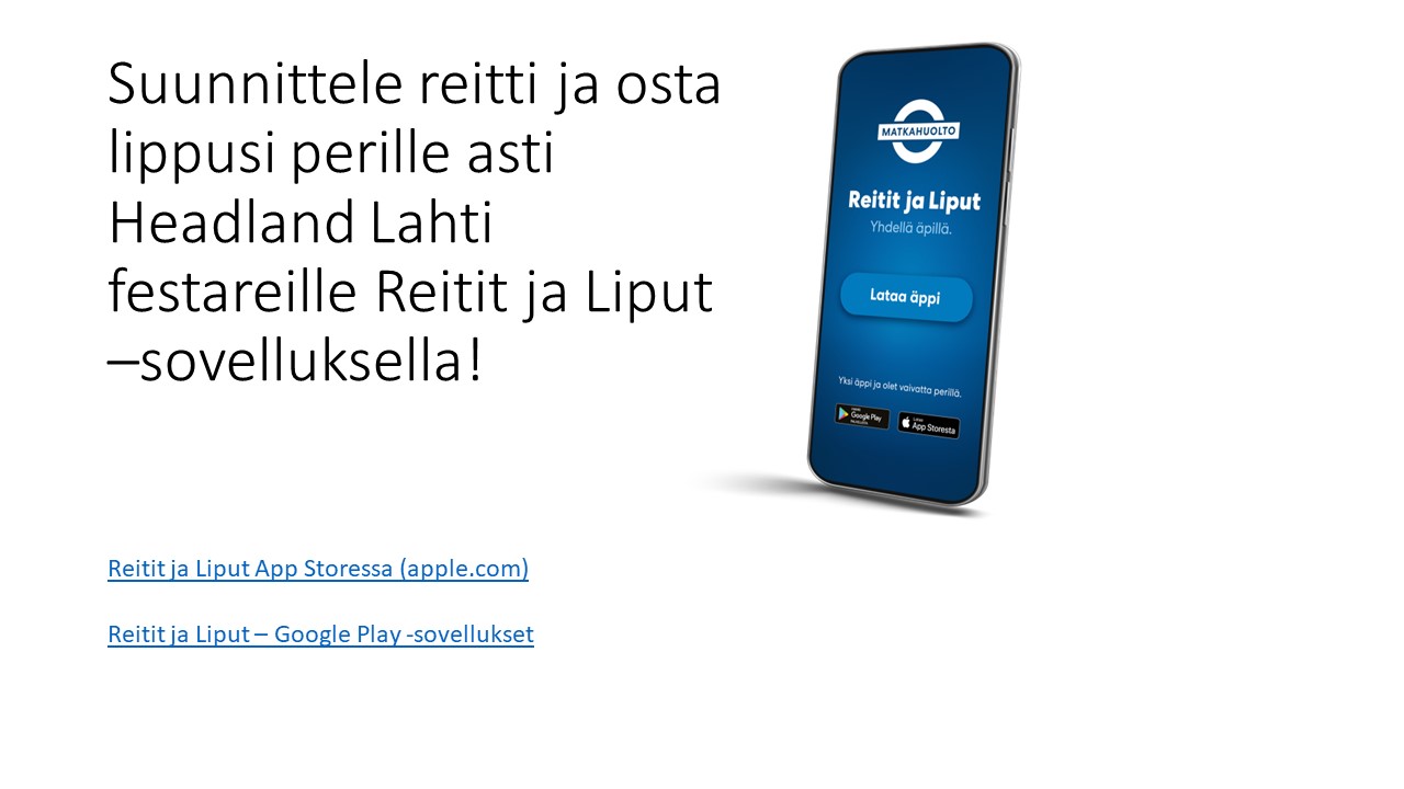 Reissu Ruoti tarjoaa viralliset festivaalikuljetukset Lahden keskustassa kätevästi, sujuvasti ja edullisesti suoraan festivaalien pääporteille!